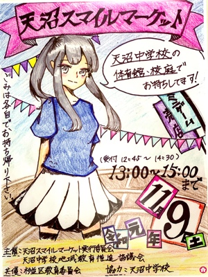 今日は、天沼中学校区地域教育推進協議会主催の「天沼スマイルマーケット」が天沼中学