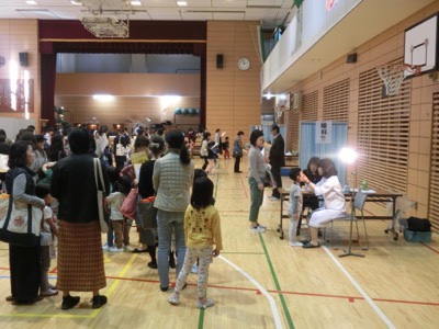 今日は、来年度の新入生が検診を受ける就学時検診の日です。受付にたくさんの子どもたちと保護者のみなさんが並びました。