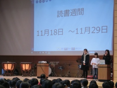 今日から2週間は「読書週間」ということで、図書委員会からのお知らせがありました。