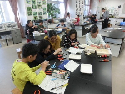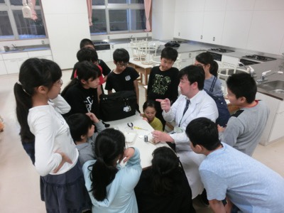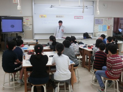 こちらは5-2です。2クラス同時に理科室と家庭科室で実施しています。