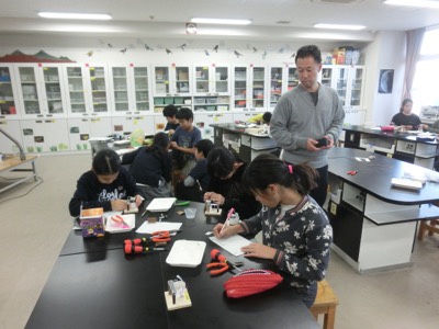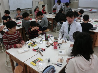 子どもたちは、これまでに学んだ電磁石についての学習を生かした工作を楽しんでいました。