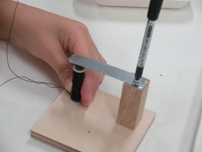 これは、電磁石でブザーを作っているところです。ブザーが鳴る仕組みを作りながら理解していきます。