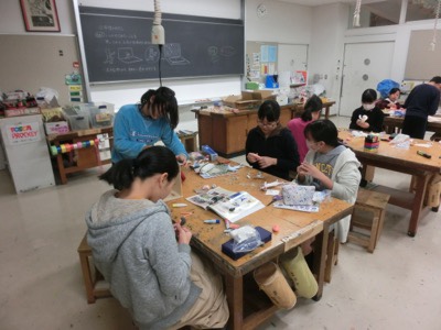 図工室では、6-3が「12年後のわたし」という作品を作っていました。