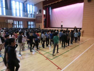 朝8:25になるとアリーナに行進曲が流れ、そのリズムに合わせて歩きながら子どもたちが集まってきます。