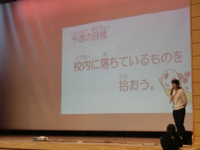 私の話の後、美化委員会が「持ち物に名前を書こう」という呼びかけをしました。