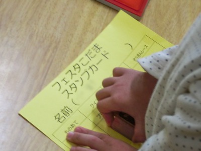 4種類のゲームやクイズをすると、こだま学級の子どもがカードにスタンプを押してくれました。