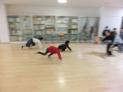 広いエントランスで「ぞうきんレース」を一緒になって楽しみました。