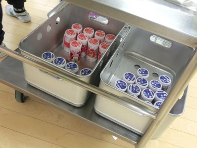 注文された個数に合わせて給食室で箱に入れてくれたものが各クラスに運ばれてきます。きなこ味とココア味の注文の比率は1:2ぐらいでしょうか。そして、給食当番がそれを配るのですが…