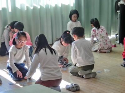 2-2は百人一首に取り組んでいました。読み上げは音声読み上げソフトがしてくれます。