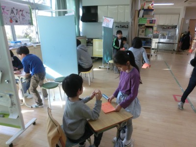 こだま学級の子どもたちが運営するゲームやクイズを3-1の子どもたちが楽しんでいました。