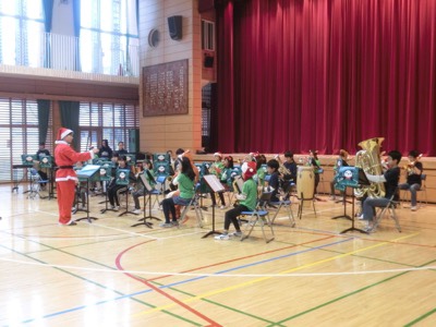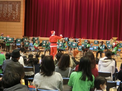 最後は、グリーンフィルハーモニーの子どもたちとOBOG、天沼中吹奏楽部との合同で「あわてんぼうのサンタクロース」と「クイーンメドレー」を演奏しました。たくさんのお客様が大きな拍手をおくっていました。