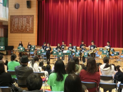 グリーンフィルハーモニーの子どもたちが「恋」「ジングルベル」「シング・シング・シング」の3曲を演奏しました。どんどん上手になっていて感心しました。