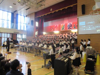 終業式は儀式的行事の一つなので、校歌を歌います。