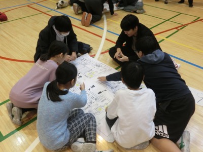HUG訓練とは、学校が震災避難所になった想定で、さまざまな人が避難してきた時にどの教室に収容するかなど、避難所を運営するシミュレーションです。