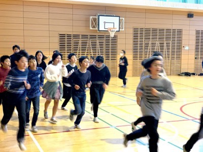 アリーナでは6年生がかけ足です。寒い冬こそ、朝から体を動かして温めることが大切ですね。