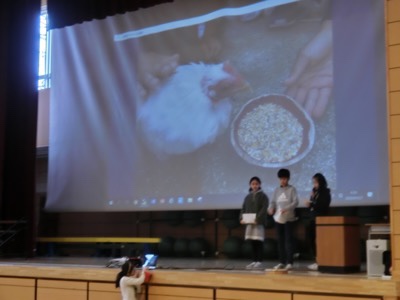 飼育栽培委員会からはチャボのチャチャについて報告がありました。1月1日の朝、飼育小屋で亡くなっていたそうです。