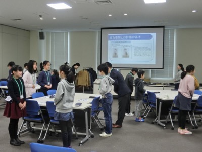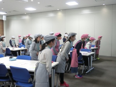 AKP社長役の子どもから、1日お世話になる伊藤研修センターの職員の方に「よろしくお願いします」と挨拶をしました。