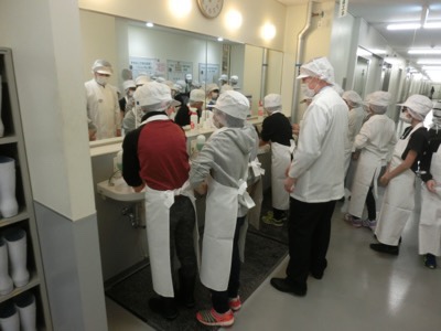 3つ目のグループは寿司作りです。厨房エリアに入る前に、まずは正しい手洗いから。