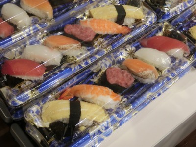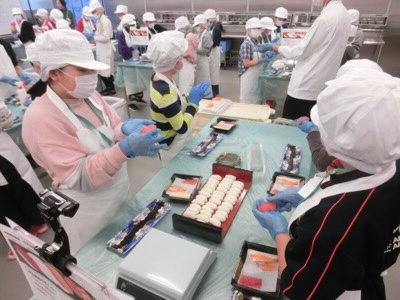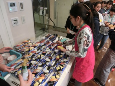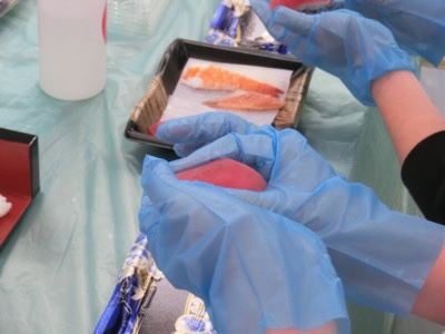 お弁当を食べ終わったら、作ったお寿司を一人2カンずつ食べることができます。マグロやサーモンが人気のようで…