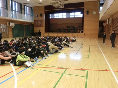 今日は5年生が、7&iホールディングス伊藤研修センターに社会科見学に行きます。AKP(天沼会社経営プロジェクト)の学習の一つとして、企業理念や社員研修について学びに行くのです。アリーナで出発式をしました。