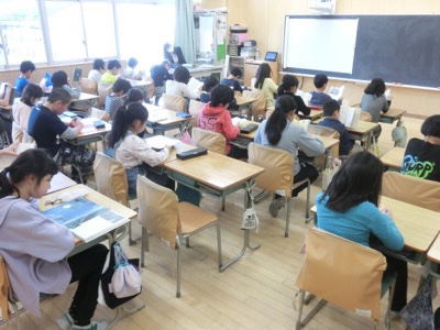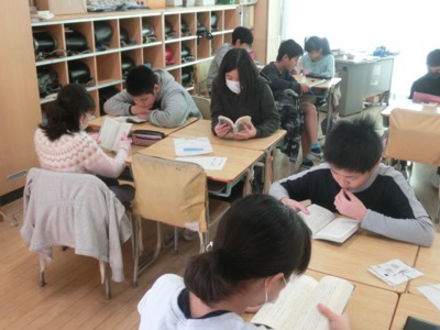 今週来週は読書週間なので、朝の時間にはどのクラスも読書をします。これは1-3です。
