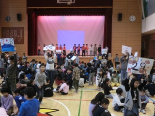 不審者のような人が出てきましたが、これは週番の向井先生です。最近、登下校でフードを深くかぶり手をポケットに入れている子が多いので危ないですよ、というお話でした。