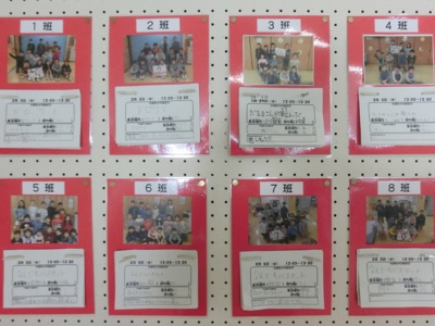 今日の昼休みはたてわり班で遊びました。それぞれの班がどこで何をして遊ぶか、エントランスに掲示されています。