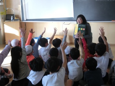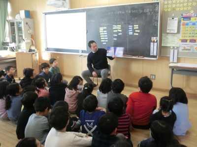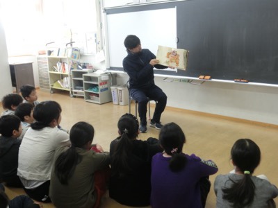 1年生向けの本「ぴかくんめをまわす」は4-2担任の中村先生が読んでくれました。