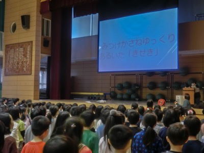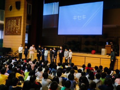 2020-02-08 音楽集会 今朝は音楽集会。6年生を送る会で歌うGreeeenの「キセキ」をみんなで歌います。 アリーナ中に歌が響きました。 歌詞がスクリーンにタイミングよく表示されたので、自信を持って歌うことができました。 Home › 学校全体 › 音楽集会 関連記事 新年おめでとうございます 令和4年度修了式 今日の授業風景 12月25日 夏季水泳指導再開のお知らせです ハッピーブックタイム 今日の全校朝会