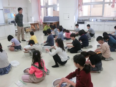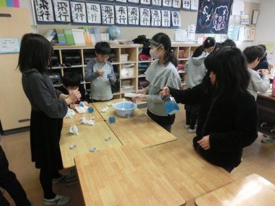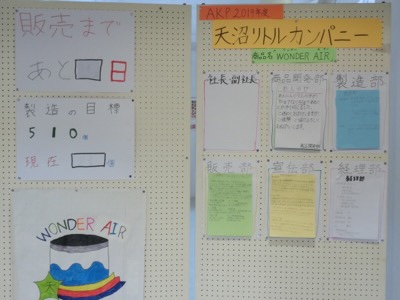 5年生はAKP(あまぬま会社経営プロジェクト)の商品生産です。「WONDER AIR」という芳香剤を売るそうです。