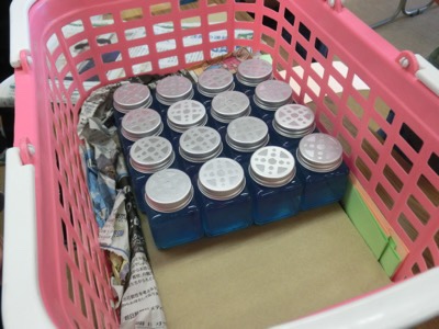 瓶の周りに付いた汚れを丁寧に拭いて、きれいな商品を生産しました。