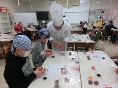 今日は、6年生が和菓子作りを体験しました。私が小さい頃からお世話になっている東京製菓学校の先生方が天沼小に来てくださって、本格的な上生菓子作りを6年生に直接指導してくれます。これは1組とこだま学級の回です。