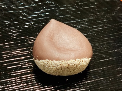 今日子どもたちが作るのは、菓銘「ひとつ栗」。先生の手の中で、餡の塊が見る間に栗になりました。