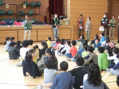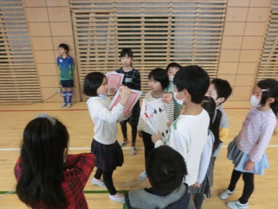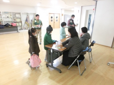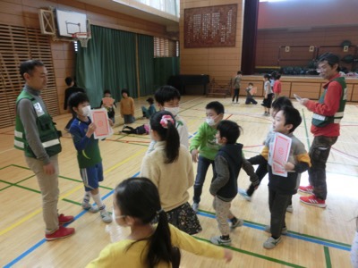 77名の子どもたちが申し込んでくれました。受付を済ませてアリーナに集合します。