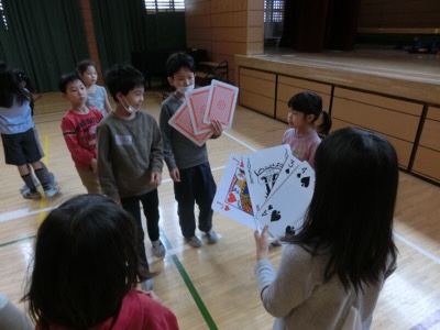 学年やクラスを超えて、仲良くトランプをして遊びました。