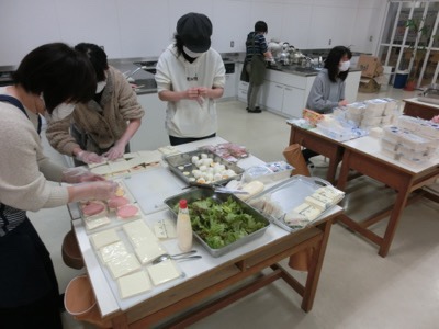 その間に、サポーターのみなさんがお昼ごはん用のサンドウィッチを作っています。