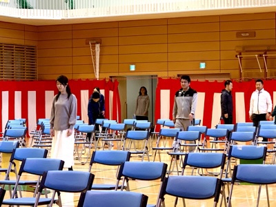 練習なしでいきなり本番を迎える子どもたちに、どのように指示を出すかを想定するためのリハーサルでした。明後日の子どもたちの晴れ姿が楽しみです。