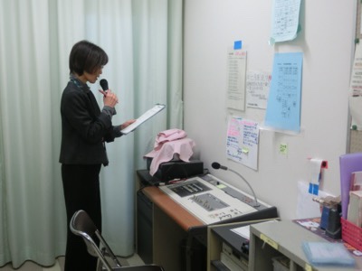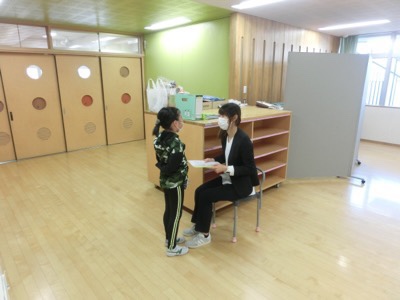 1-2です。久しぶりの学校ですが、担任の大中先生の話を落ち着いて聞いています。