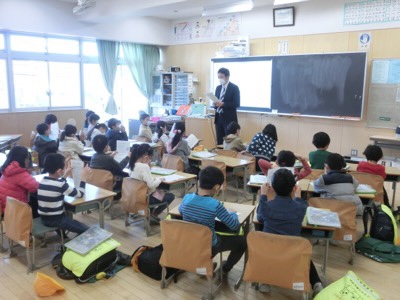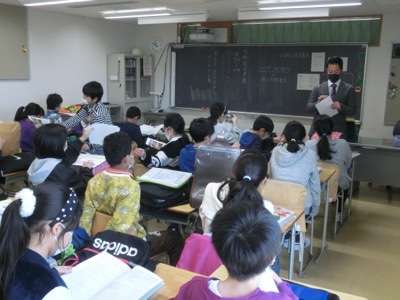 各学級では、春休みに向けたお手紙などを配りました。これは5-1です。