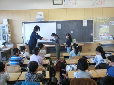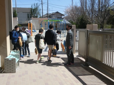 子どもたちは、先生と挨拶をして下校して行きました。5年生は次に登校するときは最高学年になります。
