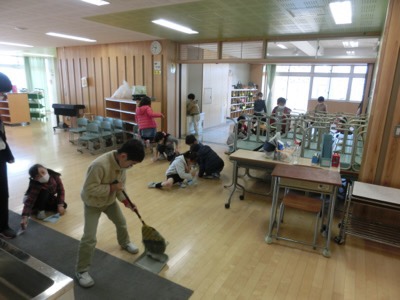 今日は修了式です。子どもたちは1・2・3年生と、4・5年生の2回に分けて登校しました。臨時休校中なので、授業日ではありません。感染拡大防止のためアリーナに集合できないので、修了式は放送で行います。