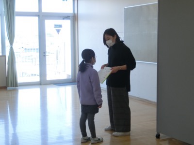 2-1ては、休校中に表彰できなかった連合展覧会の出品証が渡されていました。