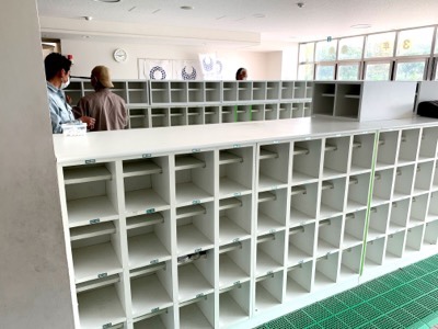春休みに入り、臨時登校日や子どもたちの居場所提供もなくなったため、新年度に向けてさまざまな準備を進めています。児童数の増加に対応するため、昇降口の靴箱を特注で増設しました。