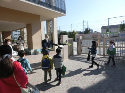 担任の先生からお手紙の入った封筒をもらって、順次帰ります。明日からまた臨時休業になります。学校で一緒に元気に過ごす日を楽しみにしています。