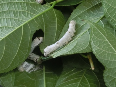 カイコが桑の葉を食べています。(苦手な方、ごめんなさい)