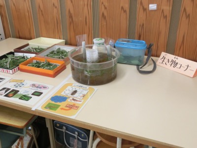 3年生の教室前には「生き物コーナー」がありました。