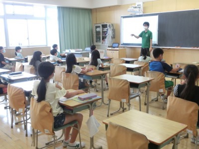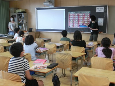 これは5-1の英語の授業です。JTEの先生と担任の先生で、アルファベットを学習していました。
