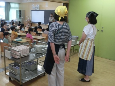 先週から始まった給食は、3日間だけはお弁当箱に詰めて各教室に運ばれてきましたが、