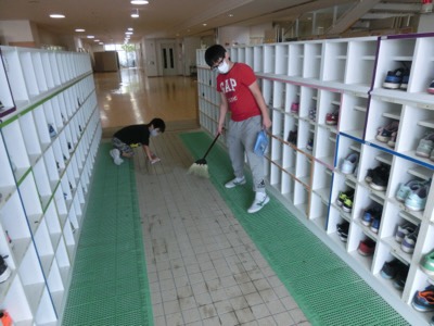 掃除の時間ではないのに、6-2の子どもたちが掃除をしています。これは家庭科の「クリーン大作戦」という授業で、汚れているところを見つけてきれいにするという活動です。