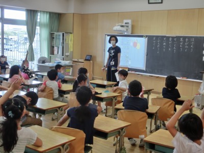 全員がそろって1週間が過ぎたので、2-4では係活動を決めているようです。どんな係が必要なのか、子どもたちが考えて発表していました。